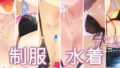 制服、黒ストッキング、水着など。